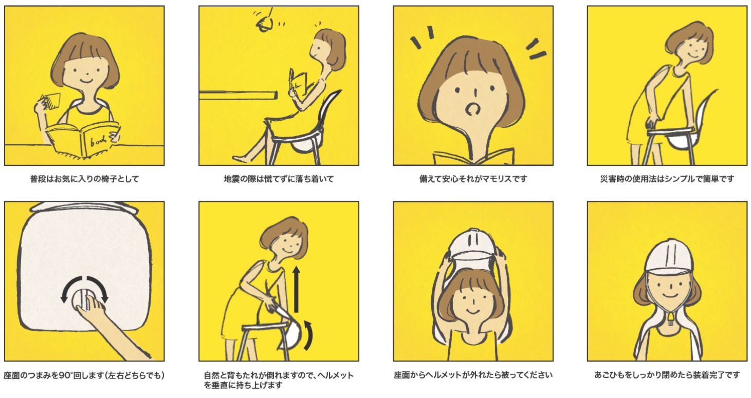 いざという時、すぐに必要となるものなのに、いつも身近に備えておくことは容易ではありません。いつも近くにほしいものだからこそ、日々のくらしで楽しく使えることが大切です。マモリスは一日の大半を共に過ごすイスとして、いつも皆さまの近くで備えています。